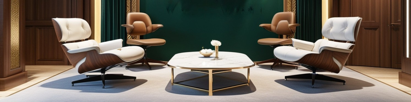 45-degree perspective view of the premium lounge chair charles eames in a modern interior.